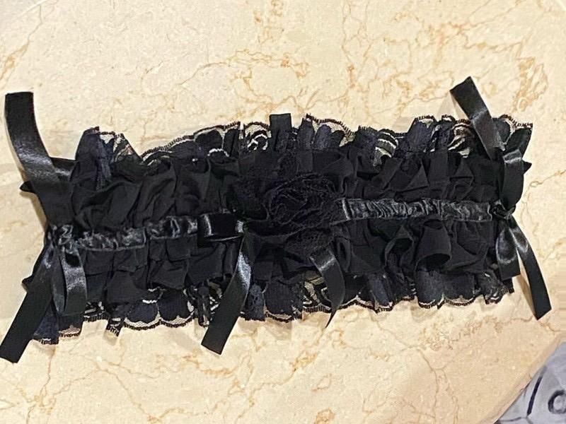 ヴァンパイアタイ付きビショップスリーブブラウス:黒 Mサイズ