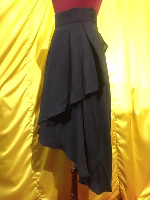 後バッスル巻きスカート風アシンメトリーロングスカート:黒