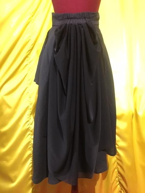 後ろに豪華なバッスルリボンがついた巻きスカート風のアシメトリーロングスカート。