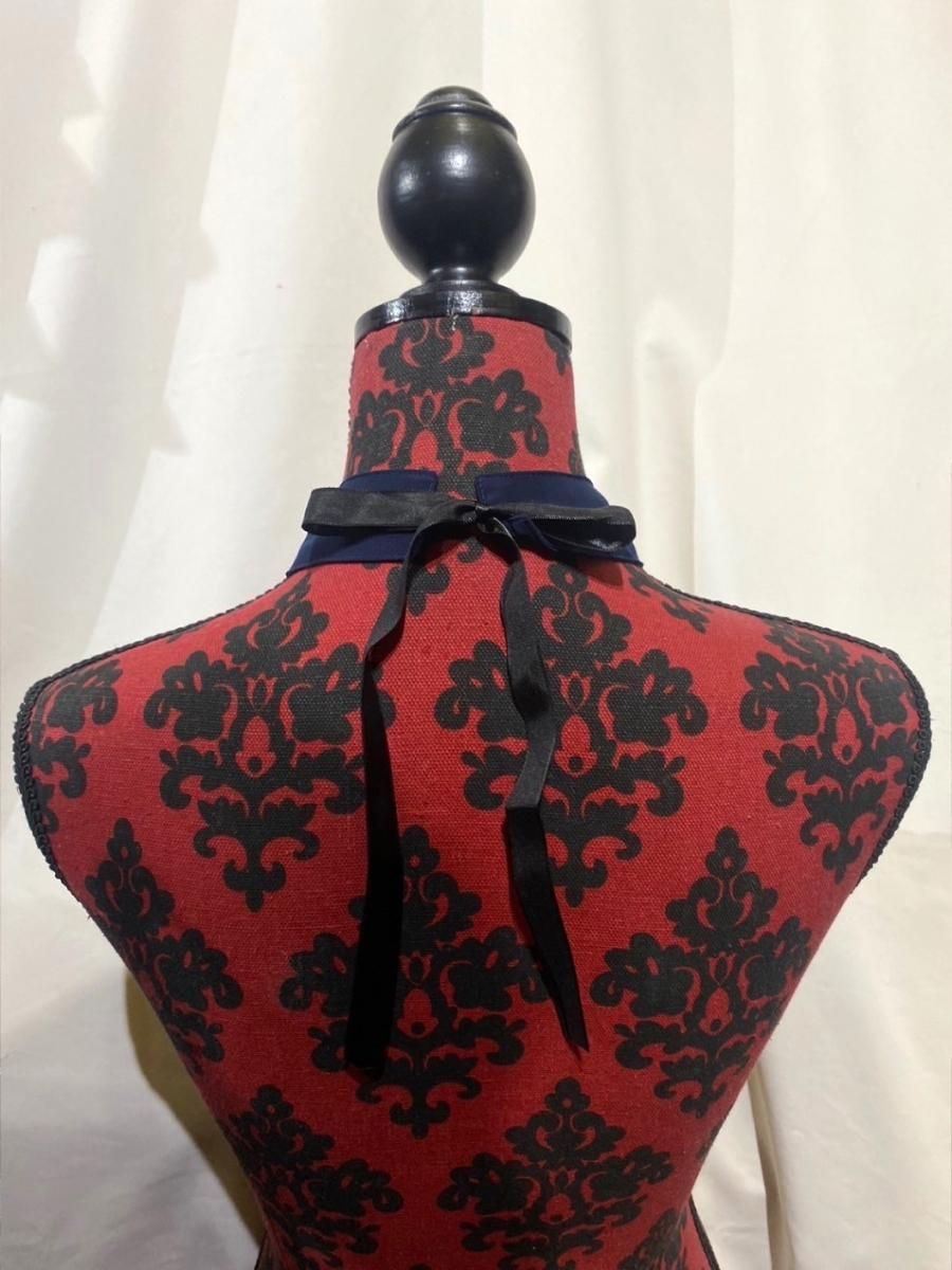 ギャザータイ&フリルタイ付きゴシック調ビショップスリーブブラウス:白×黒