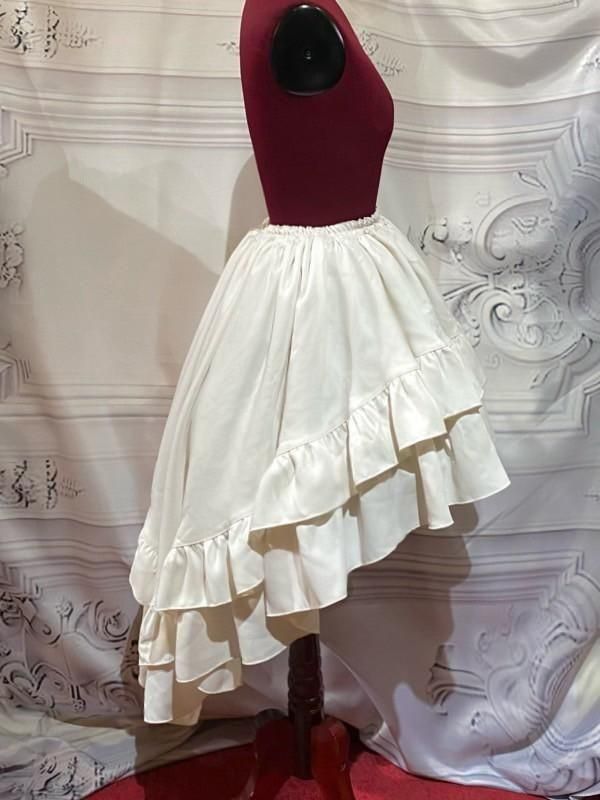 ★重なったナナメラインの2段フリルが華やかで優美なシルエットのロングスカートです。