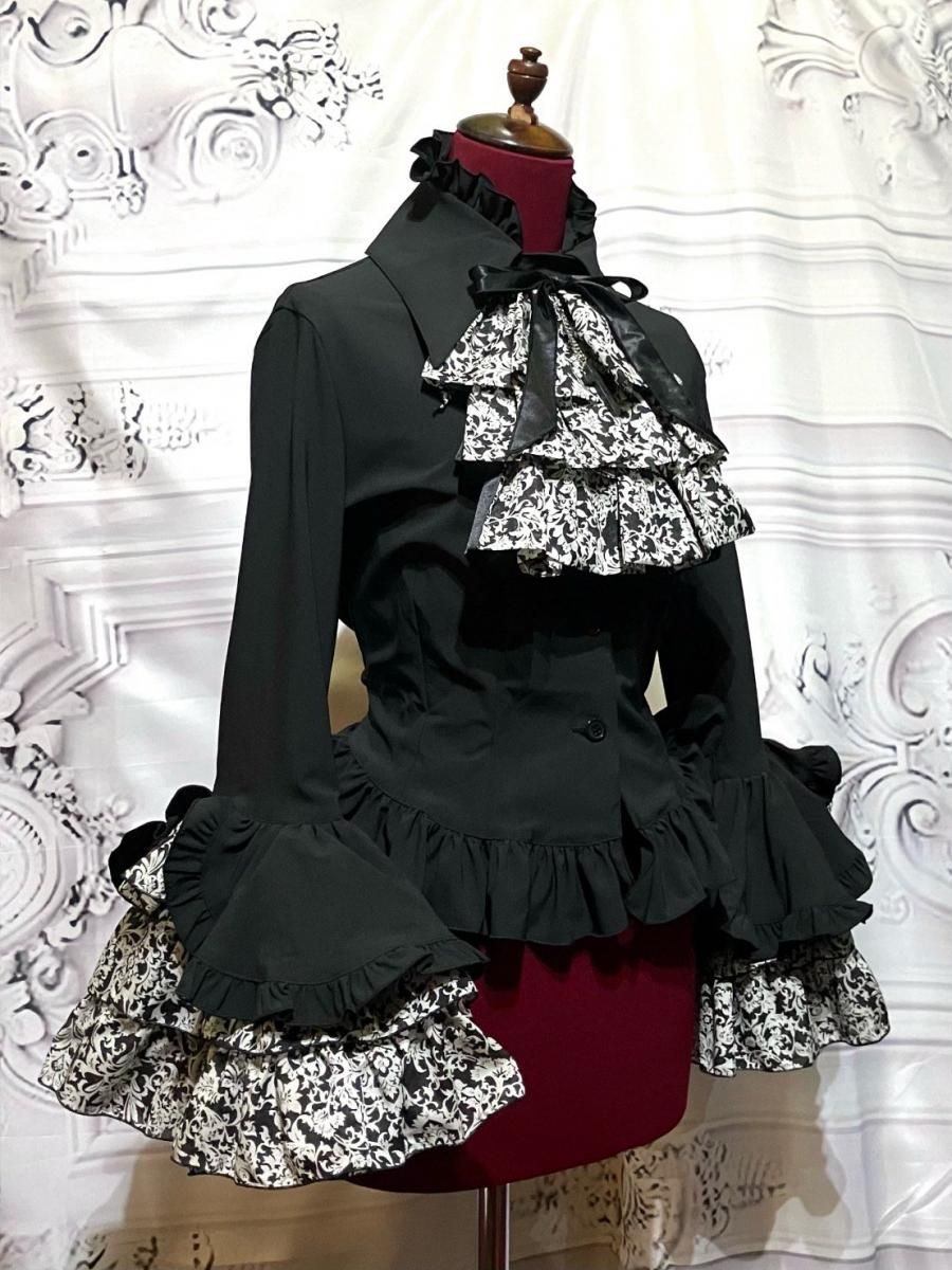 ◆受注商品◆アクセサリー付きギャザーパフボレロ:黒ニットレース×黒レース