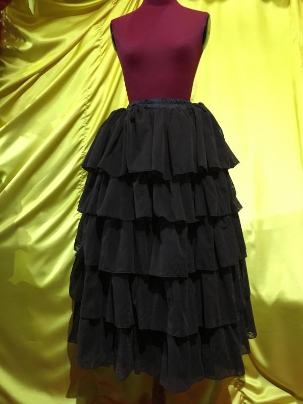 ★たっぷり膨らむので、ドレスの様に着用できるドレスタイプの華やかな5段フリルロングスカート。