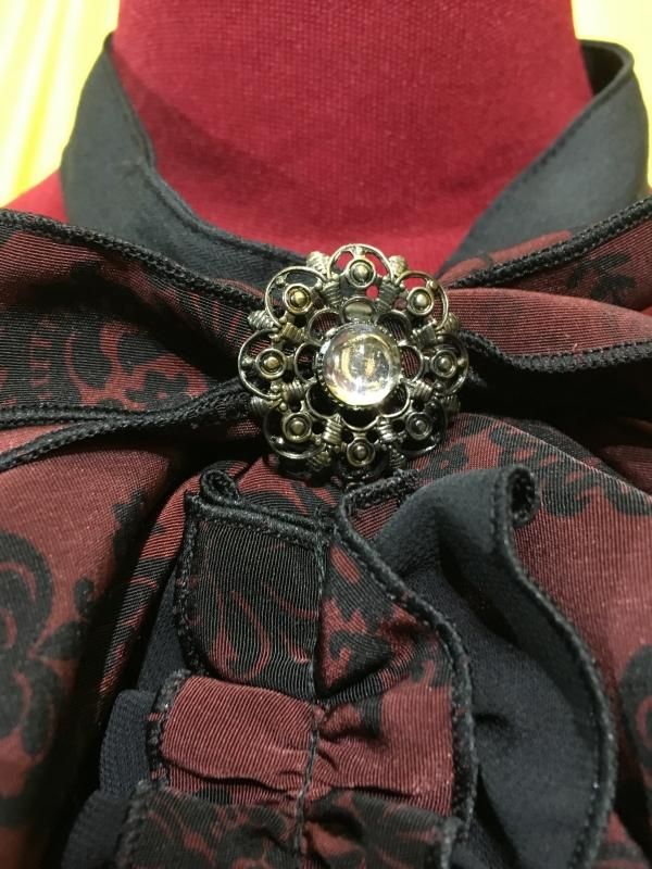 ◆Lサイズ◆アンティークカメオブローチ付きテーラードレース飾りジャケット:茶