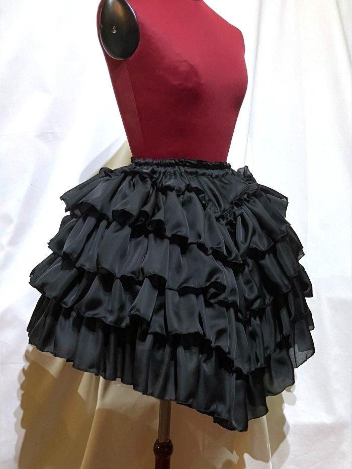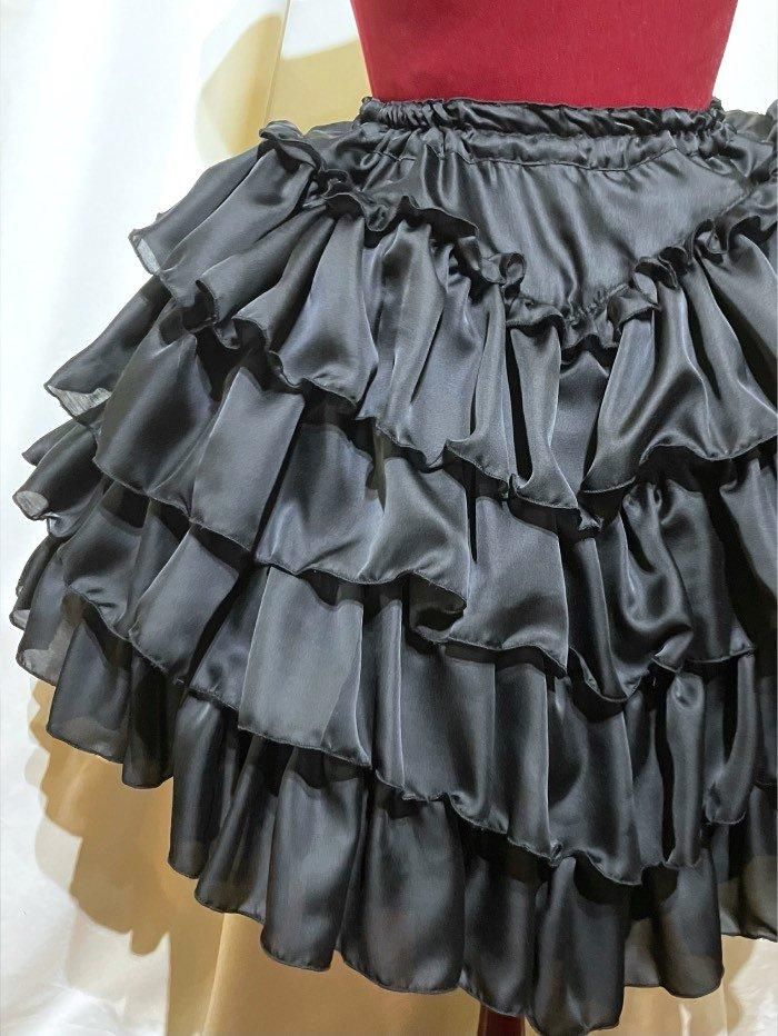 ◆受注商品◆レース飾りティアードスカート:黒白ギンガムチェック