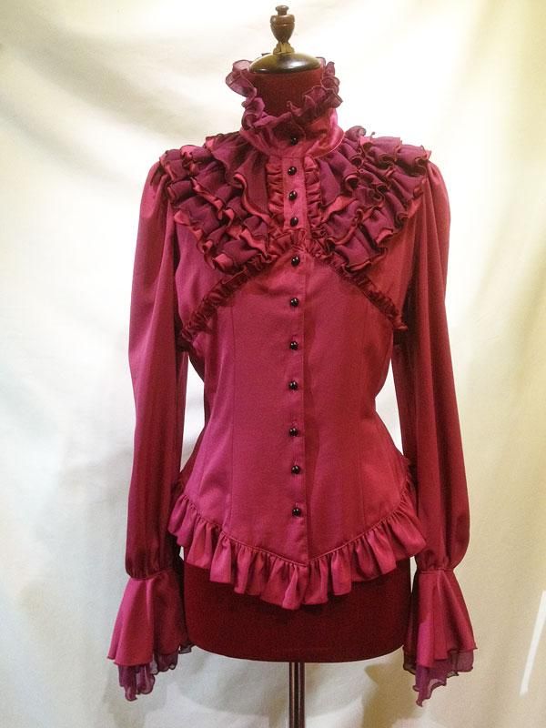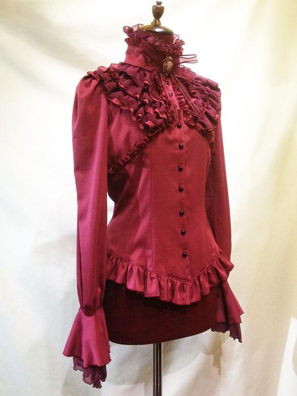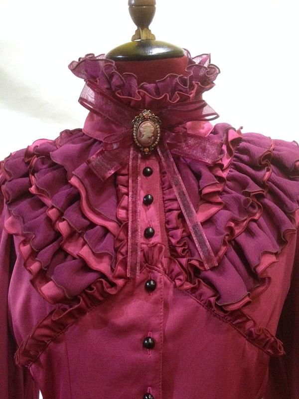 ◆受注商品◆クラシカルカメオ付きエレガンスブラウス:ボルドーピンク