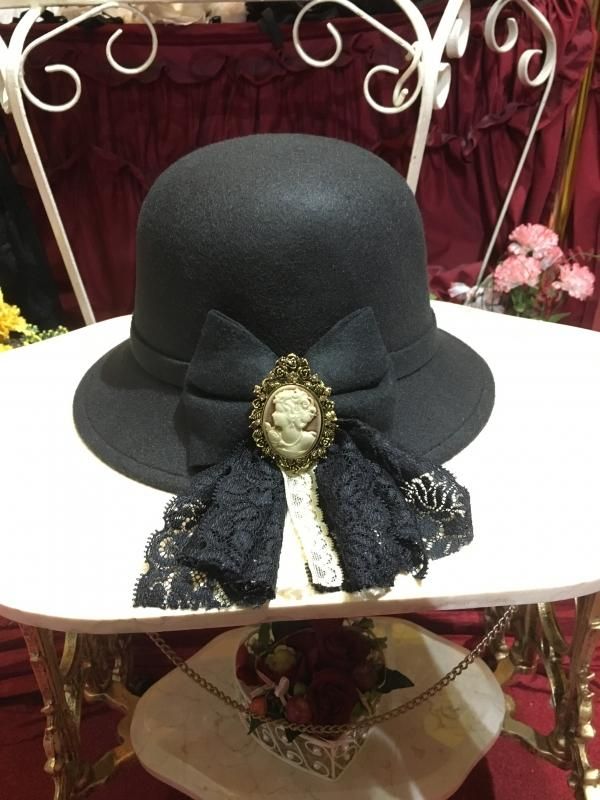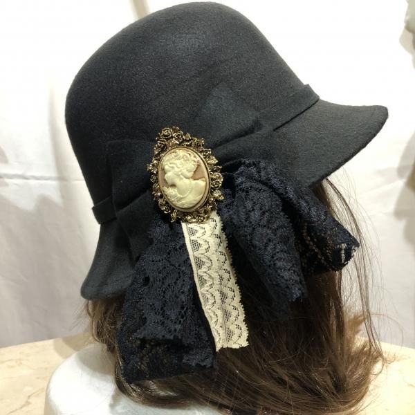 アンティークカメオ付き帽子:アンティークゴールドカメオ