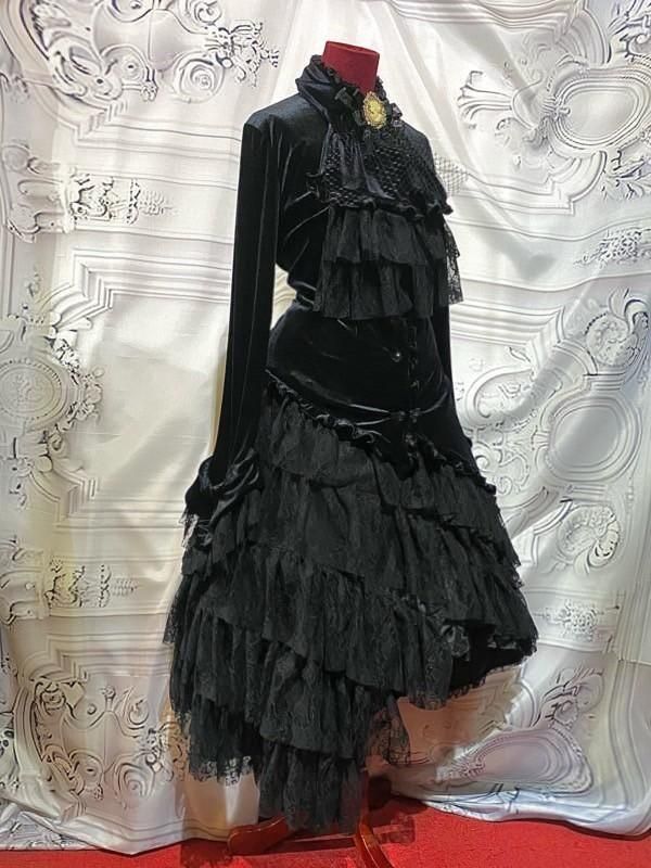 ★特別セール価格★ゴシック調デコレーションバラボンネット:紺ゴシック柄×黒レース