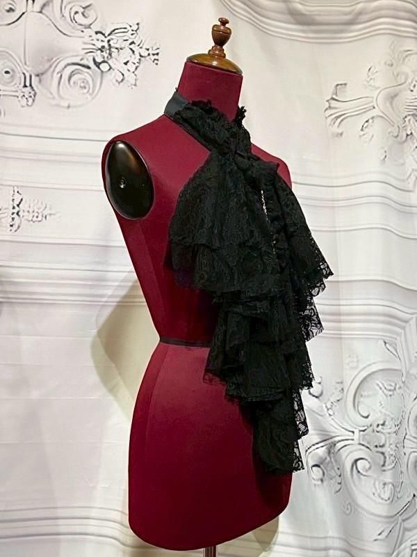 ◆受注商品◆カメオタイ+タックプリーツタイ付きクラシカル2WAYブラウス:白×黒タイ
