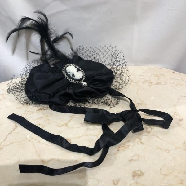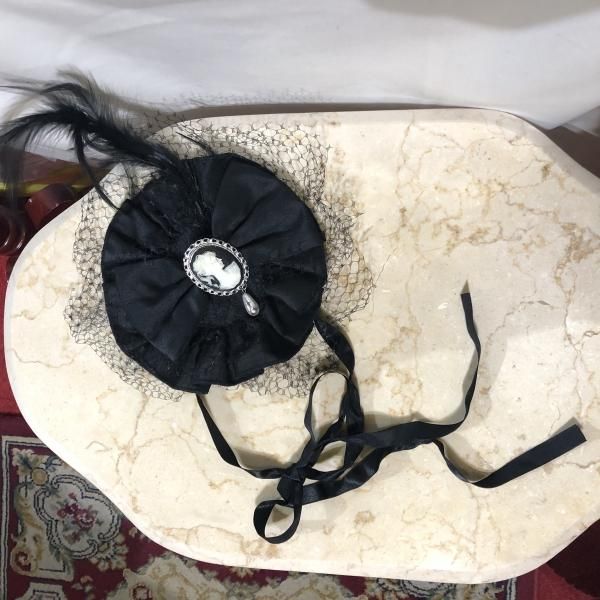◆受注商品◆ブローチコサージュ+フリルタイ付きブラウス:黒×黒×黒レース◆LL〜3Lサイズ◆