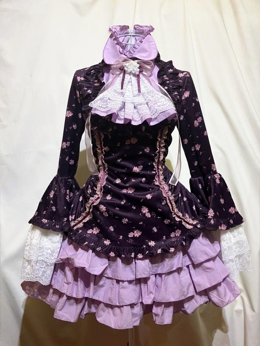 ゴシックエレガンス調アシンメトリー堕天使ドレスセット:黒×黒フリル