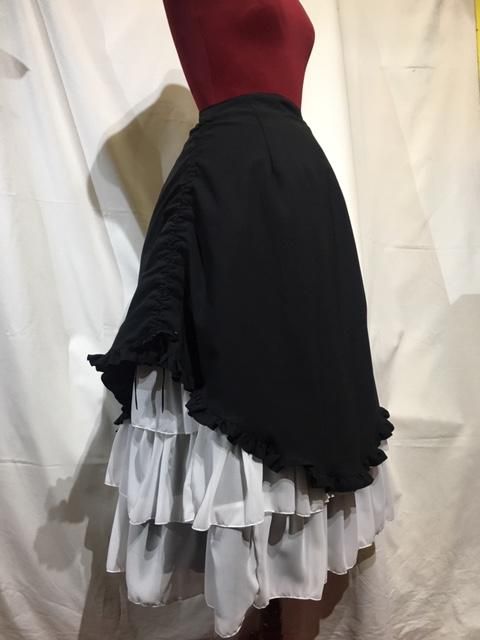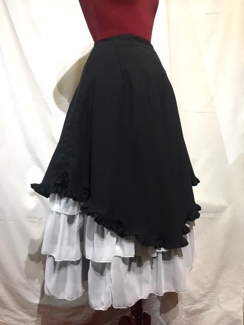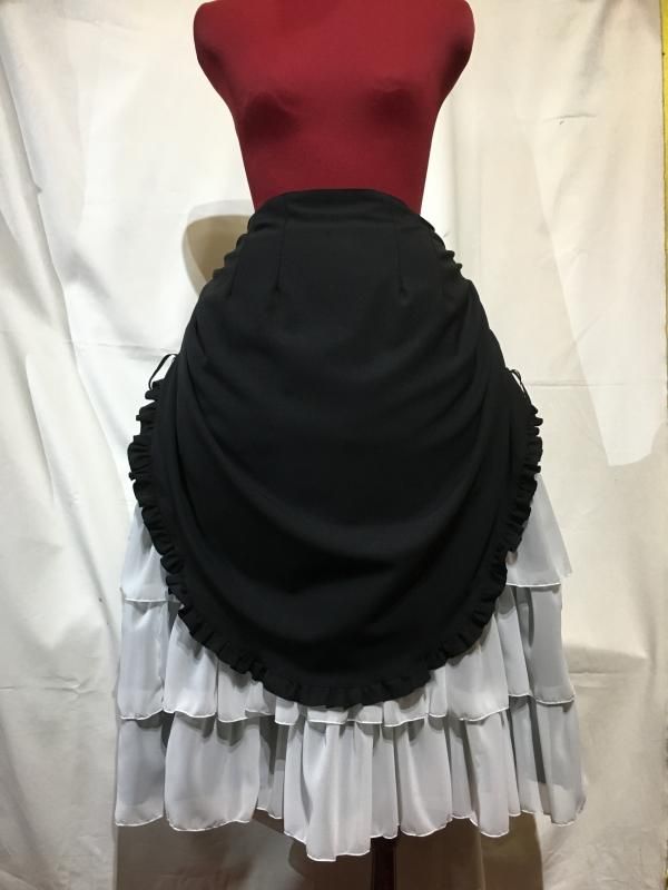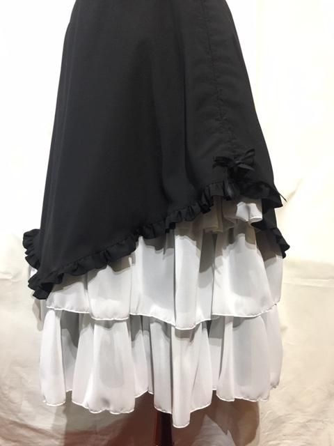 ◆受注商品◆サテンバラ付きレース飾りティアードサンドレス:黒×黒レース×黒サテンバラ