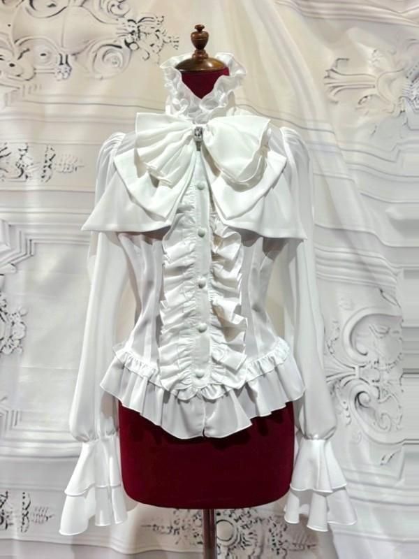 ★やわらかなフリルリボンのタイが豪華なブラウスです。