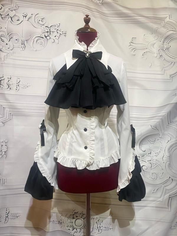◆受注商品◆アクセサリー付きギャザーパフボレロ:黒ニットレース×黒レース