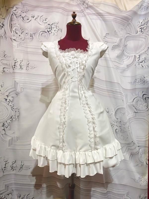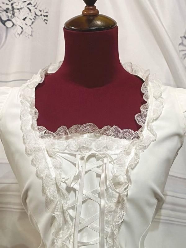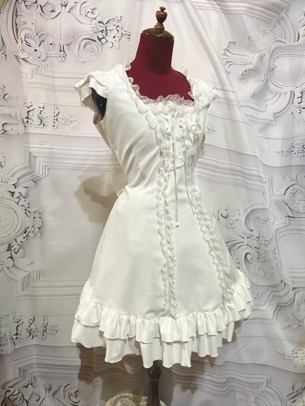 ◆受注商品◆あみあげアンティークワンピース+姫袖+パニエ入りフリルスカート:オフ白ゴシック柄×黒