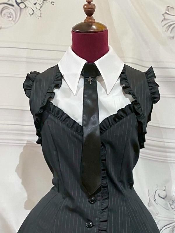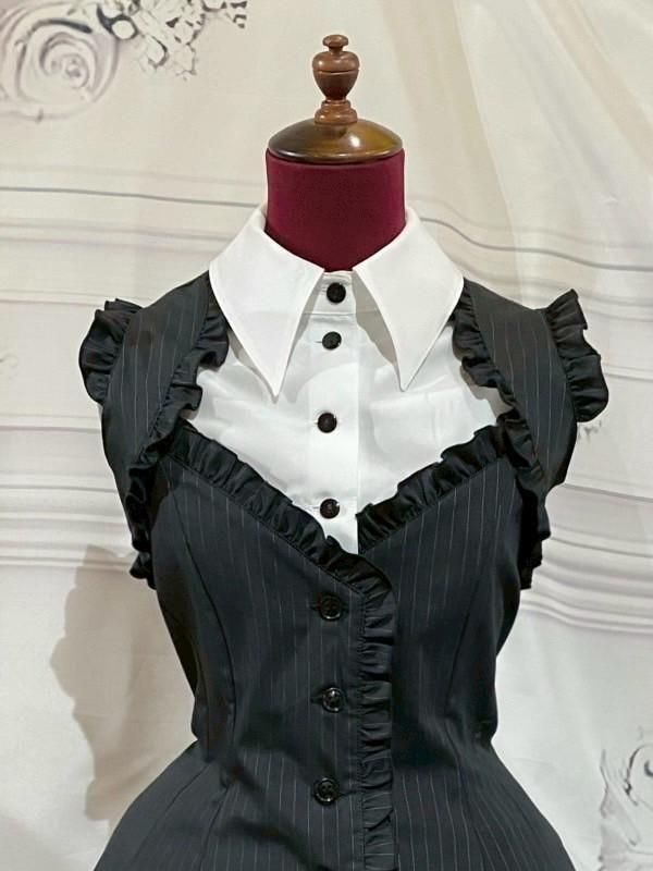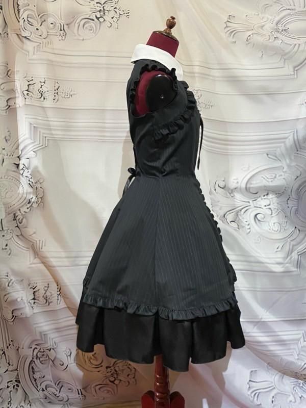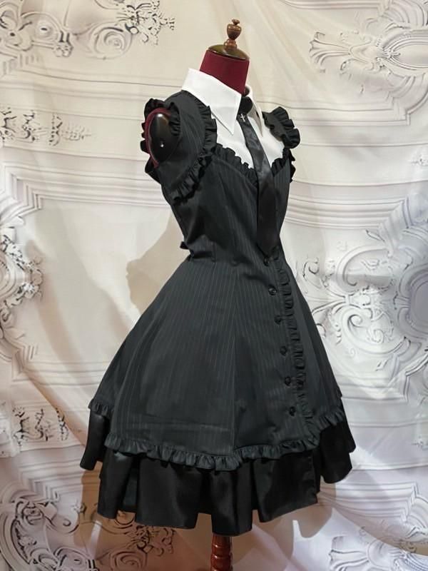◆受注商品◆姫袖ボレロ付き配色切り替えデコラティブワンピース:黒ワンピース×黒ボレロ