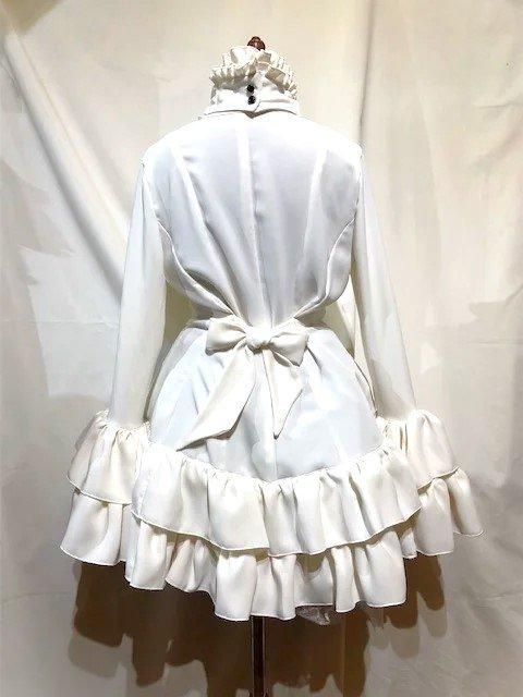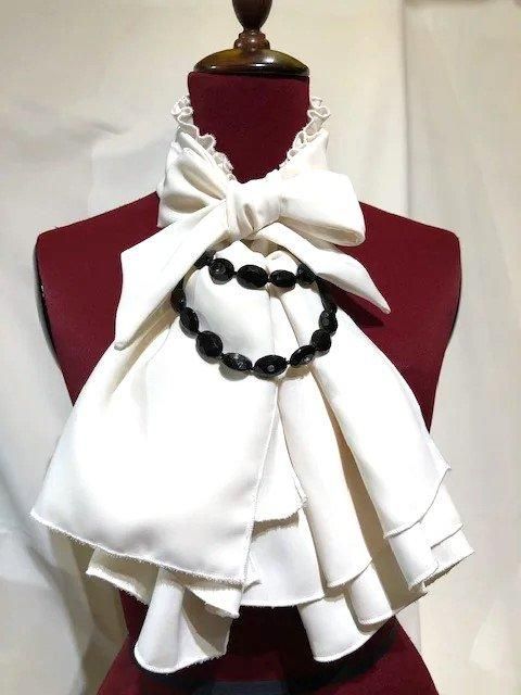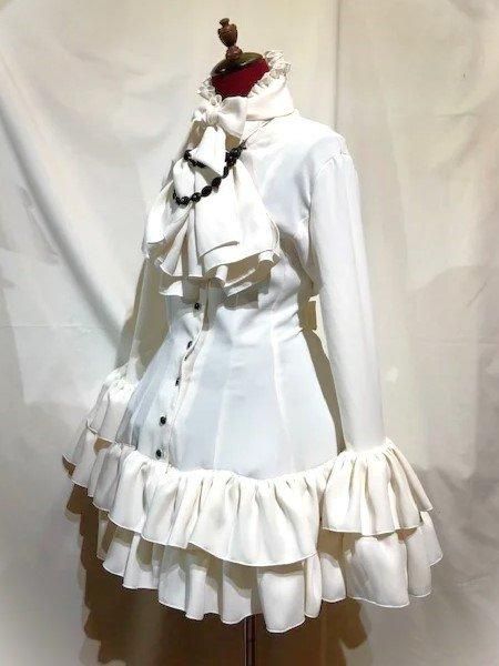 ドレープタイ付きブラウス型フェミニンワンピース:白×黒石チェーン