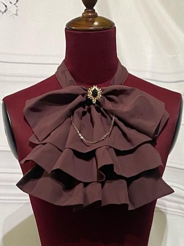 チェーン付きゴシック調フリルタイ:えんじ×黒石アンティークゴールド