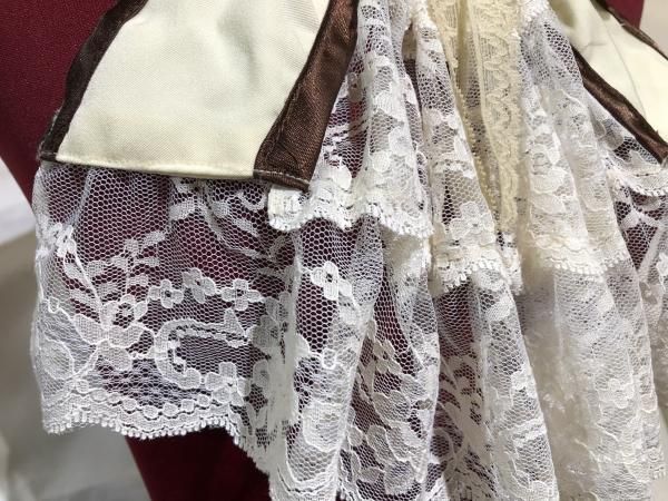 切り替え総フリルワンピース+パニエ入りボリュームレース付きスカート:ボルドー×黒レース