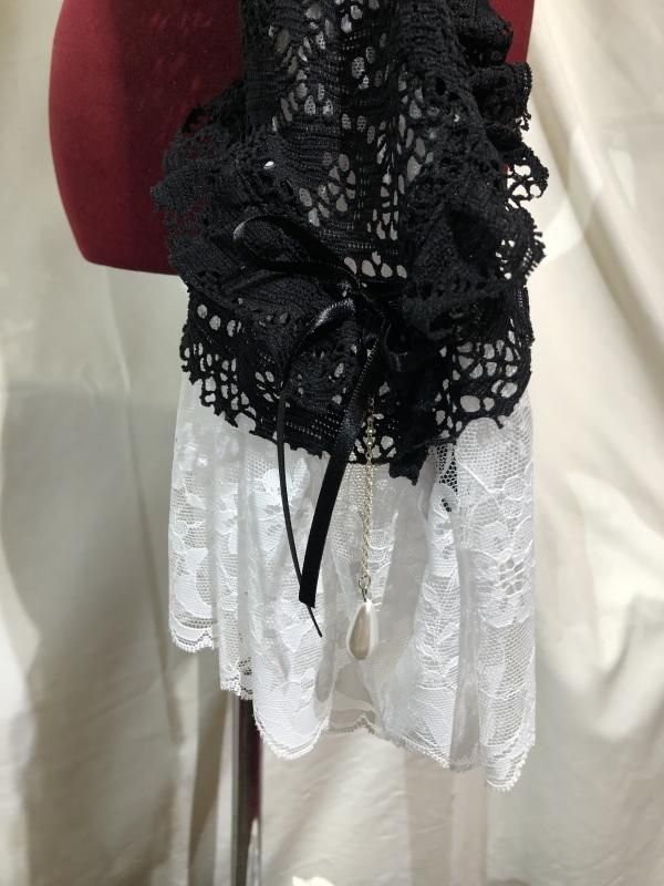 ◆受注商品◆アクセサリー付きギャザーパフボレロ:黒ニットレース×白レース