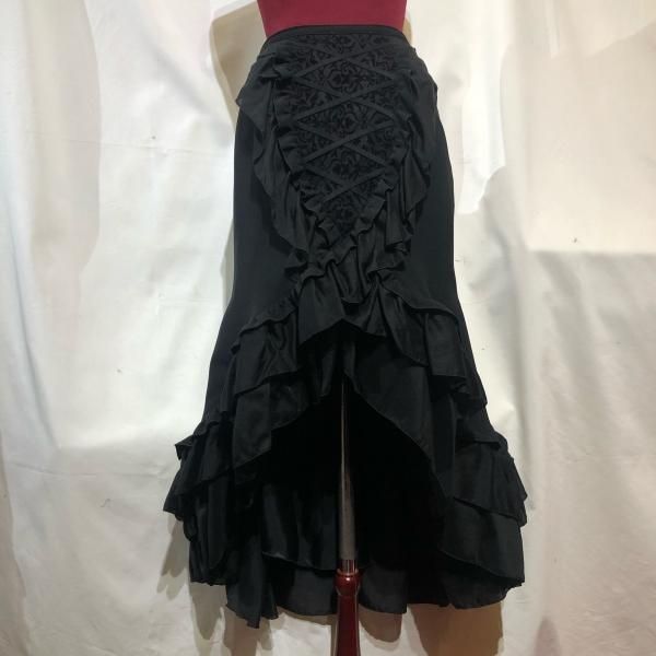 ◆受注商品◆レース飾りティアードスカート:黒白ギンガムチェック