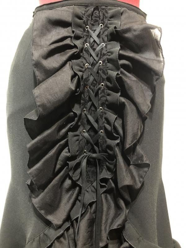 ◆受注商品◆編み上げ総フリルドレスワンピース:黒赤チェック×黒レース