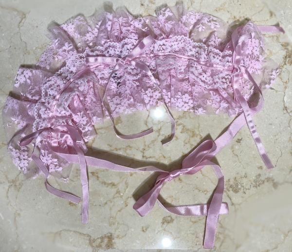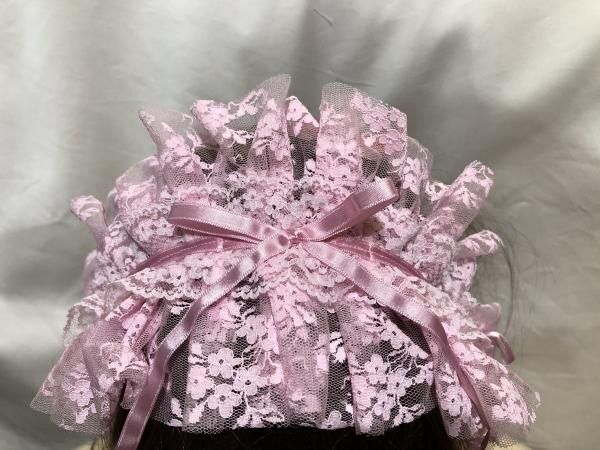 総レースボリュームフリルヘッドドレス(小):ピンクレース×ピンクリボン