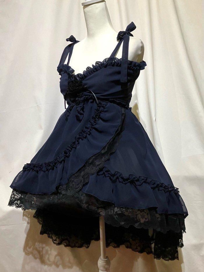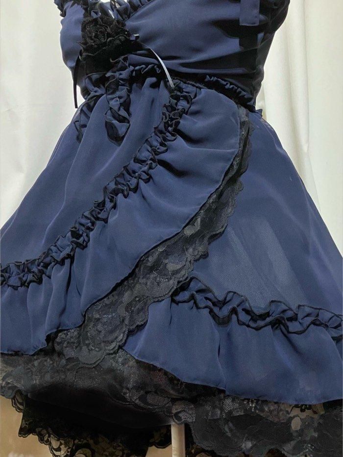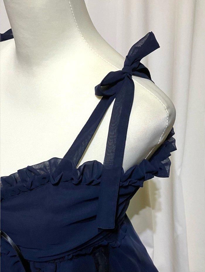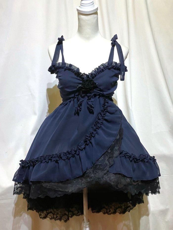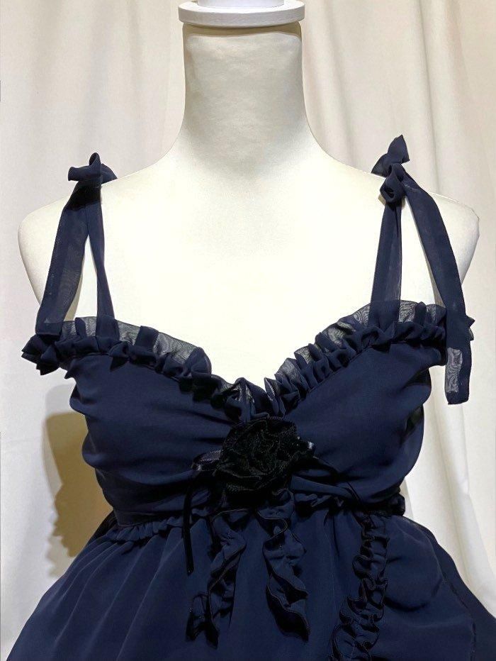 ★大きなリボンの形の胸元と、流れる様な総フリルが豪華でドレス感覚の愛らしいキャミドレスです。