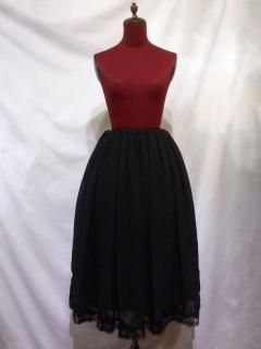 ◆受注商品◆バッスルレース付きスカラップレースロングスカート:黒