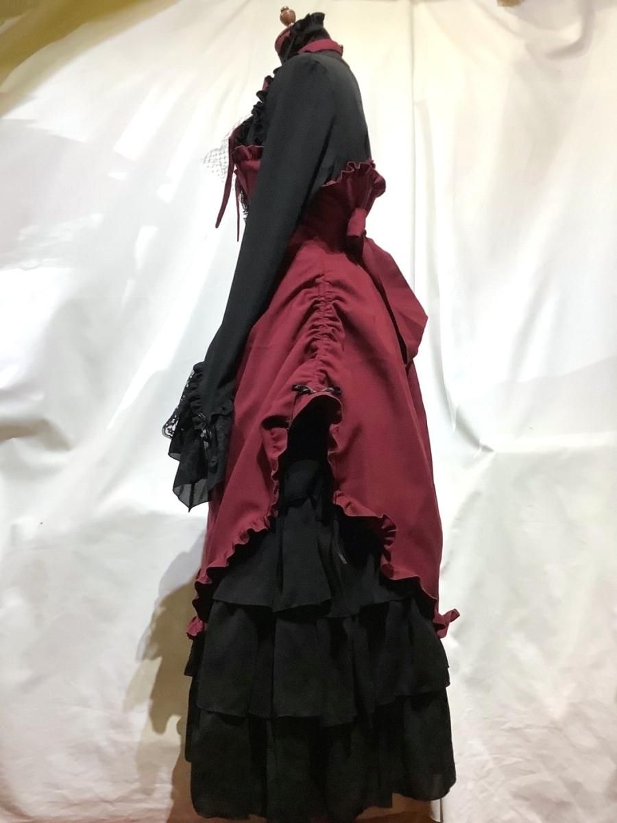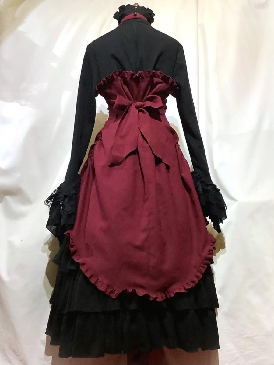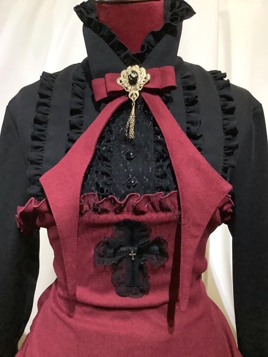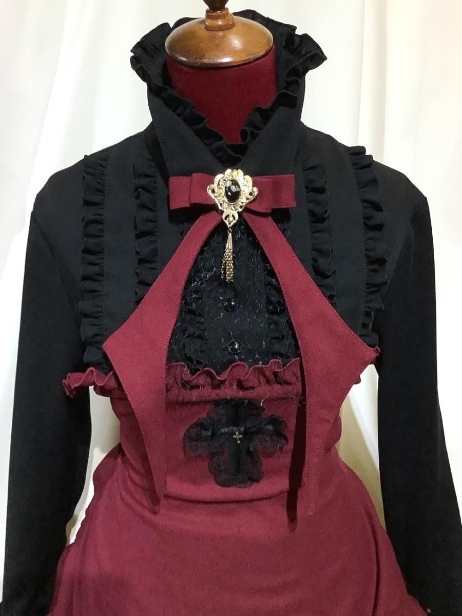 ◆受注商品◆デコレーションクロス付きファー衿ケープ:黒×ボルドー