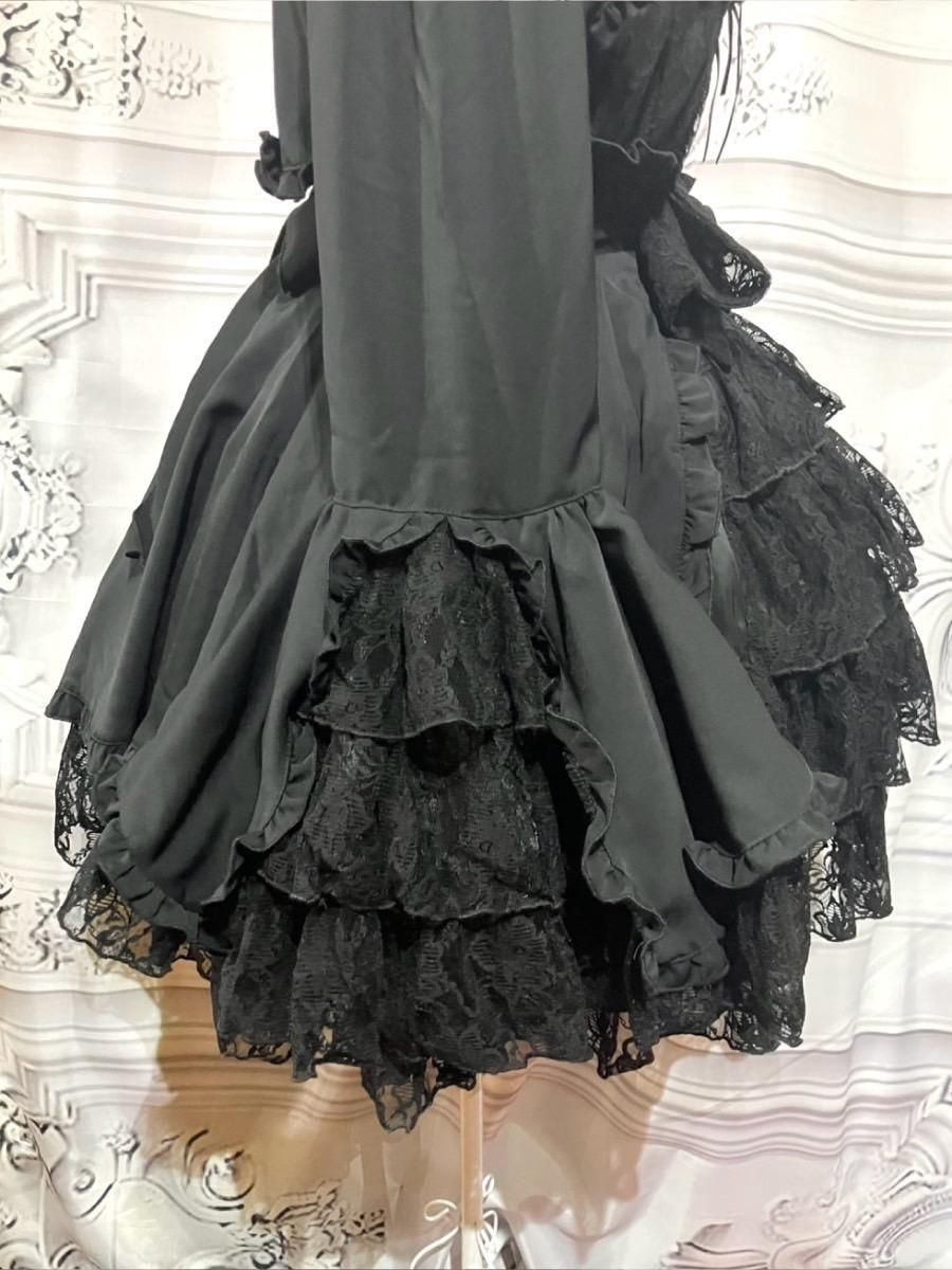 ◆受注商品◆サイドギャザー総フリル2枚重ねロングドレススカート:黒×白フリル◆L〜LLサイズ◆