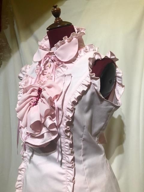 ★ワンピースのバックスタイルはファスナーでウエストのリボンで絞って調節して頂けます。
