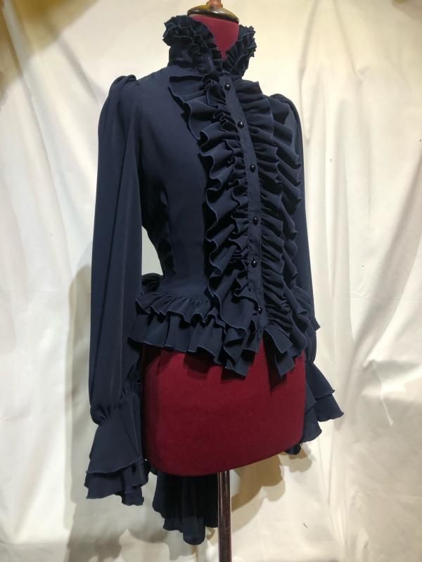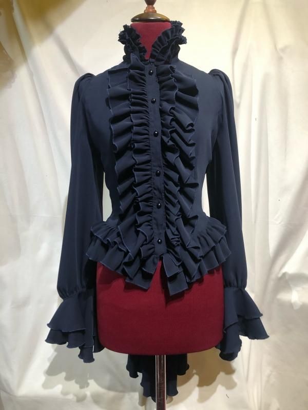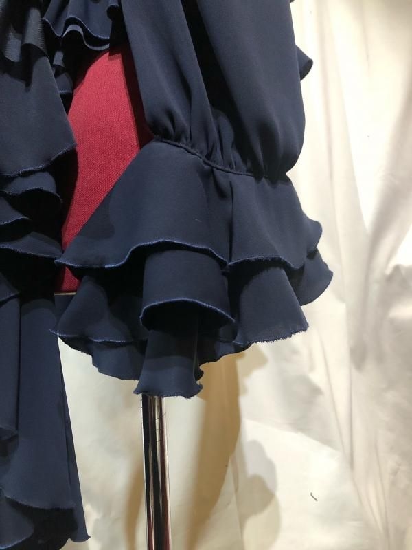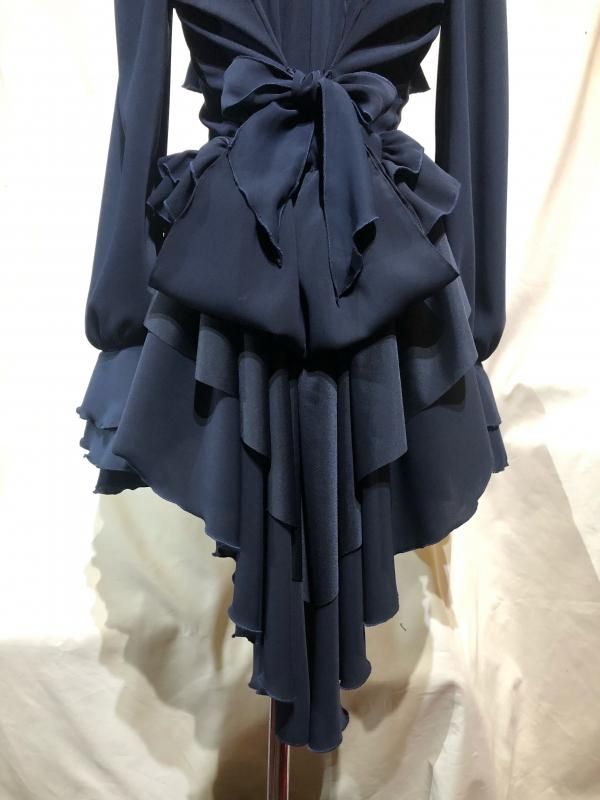 後ろがたっぷりのボリュームフリルが飾られた後ろが長い豪華なワンピース型のブラウスになります。