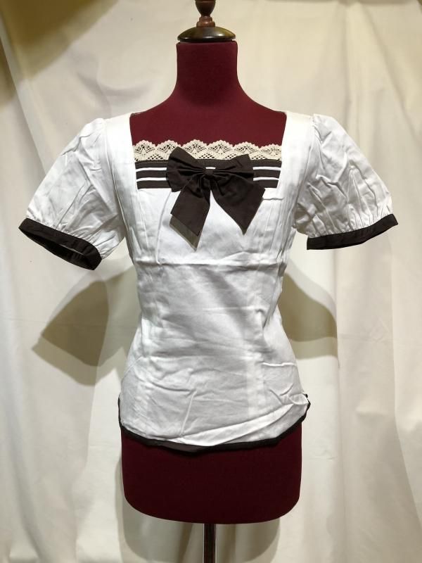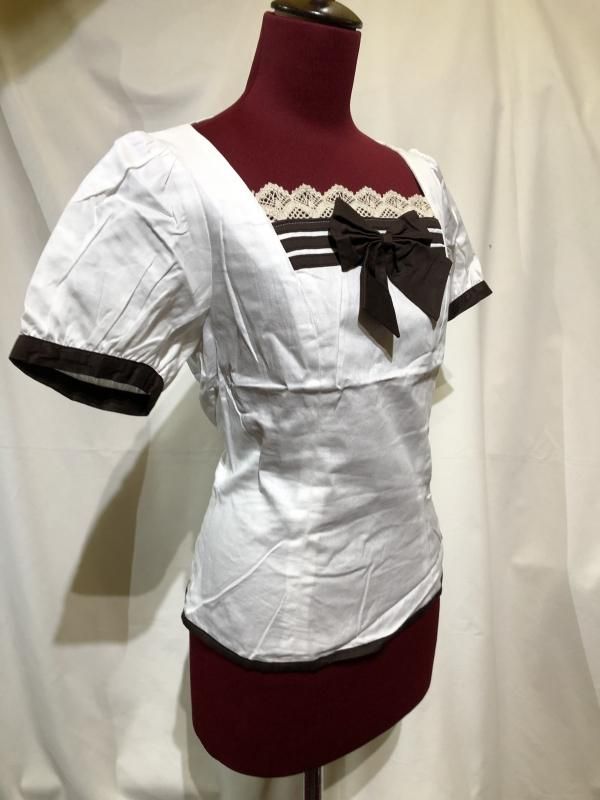 ◆受注商品◆ゴシック調十字架タイ付きギャザースリーブブラウス:紫