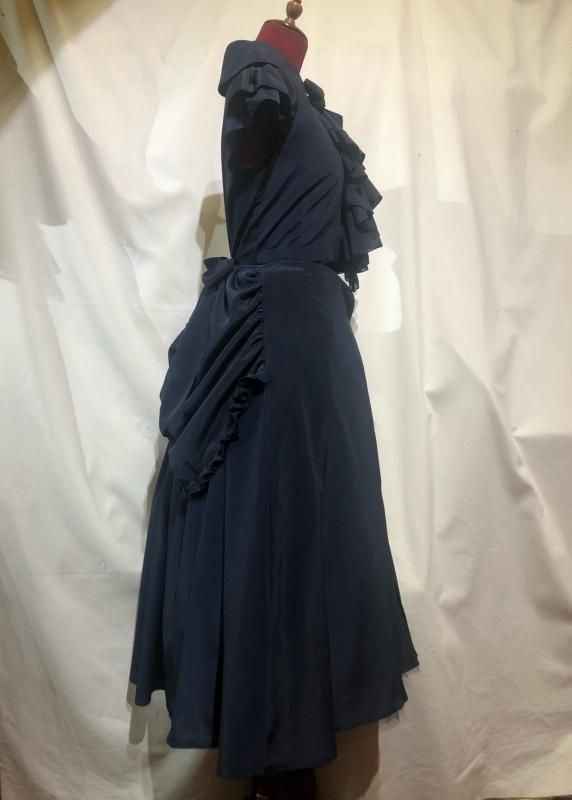 ◆受注商品◆ドレープタイ付きゴシックエレガンスブラウスワンピース:ボルドー×黒
