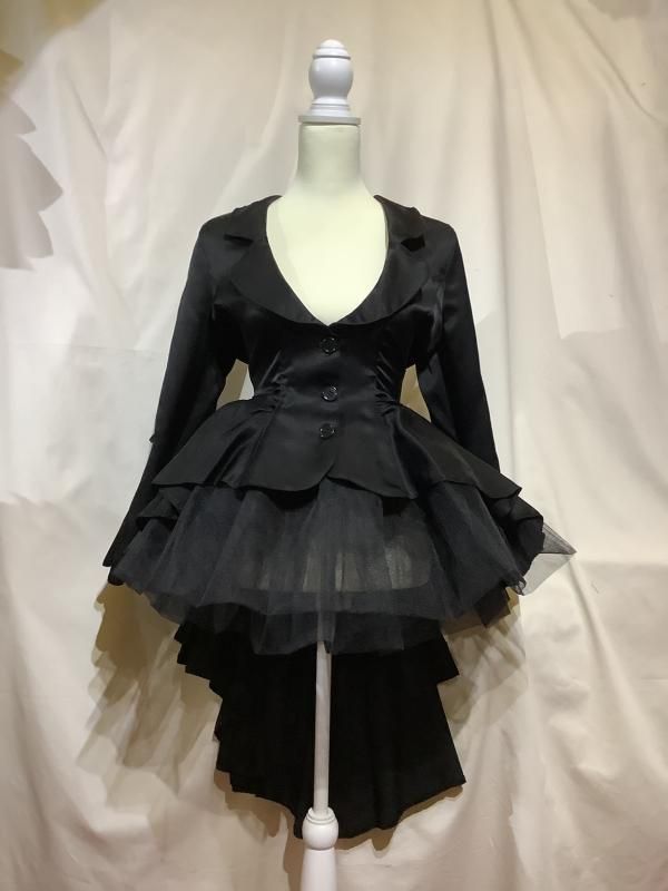 ◆受注商品◆チョーカー・バッスルリボン付きヴィクトリアン調ワンピース:黒×白レース