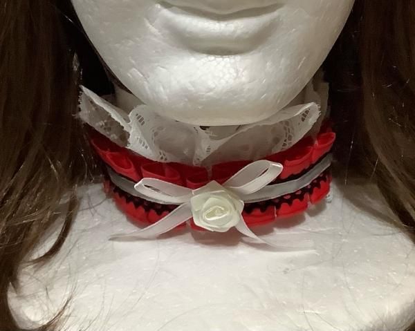 2WAYサテンバラ付きタックプリーツチョーカーorヘッドドレス:赤×白レース