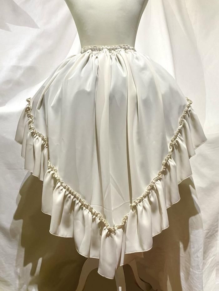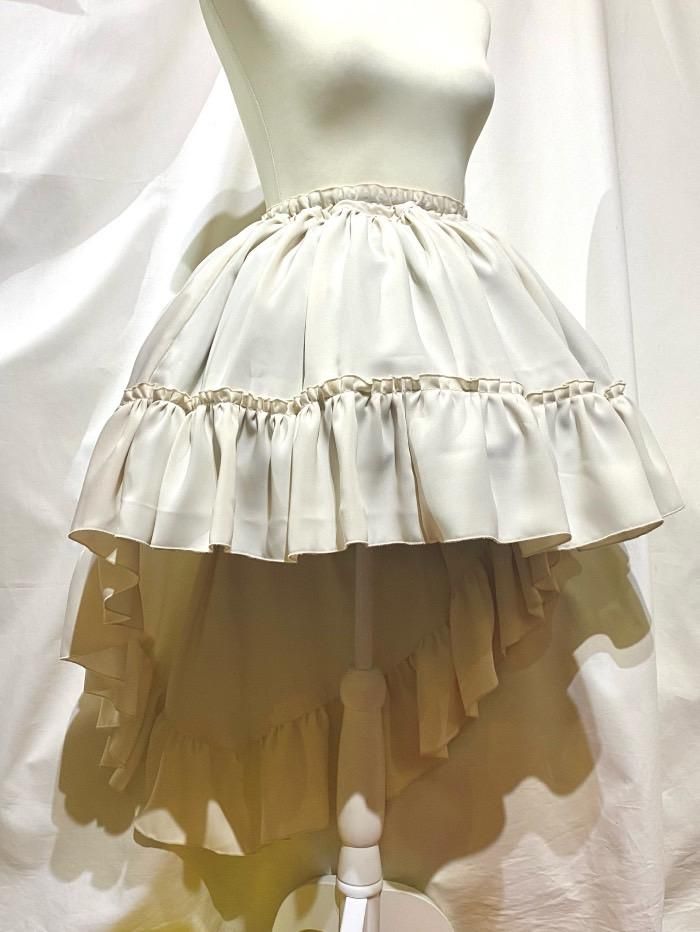◆受注商品◆サイドギャザー総フリル2枚重ねロングドレススカート:黒×白フリル◆M〜Lサイズ◆