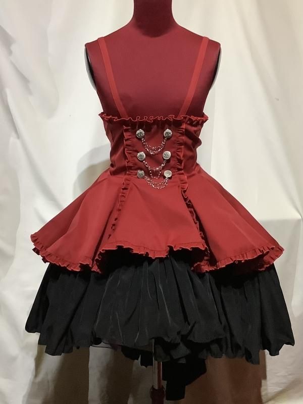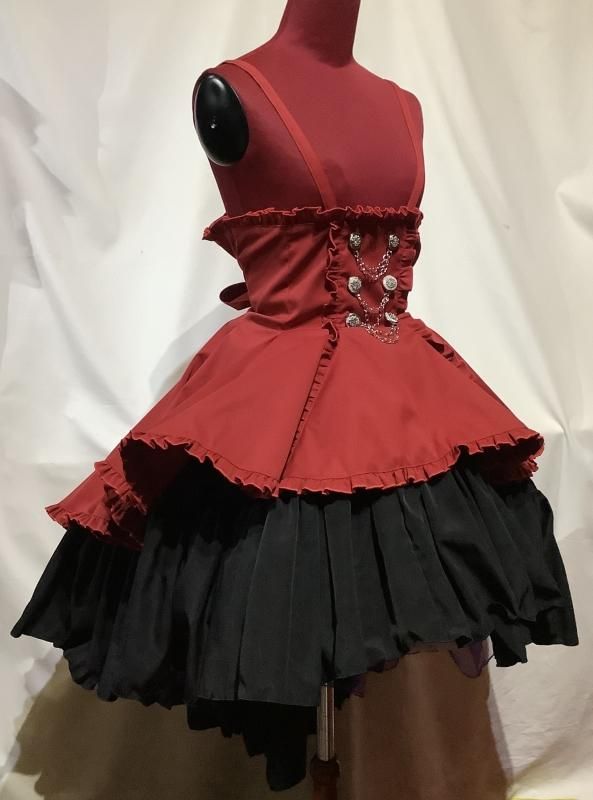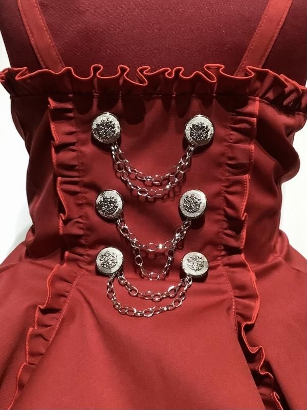 ボリュームたっぷりのドレープフリルが美しい、エンブレム柄の飾りチェーンが付いた高級感漂うハイウエストスカートです。