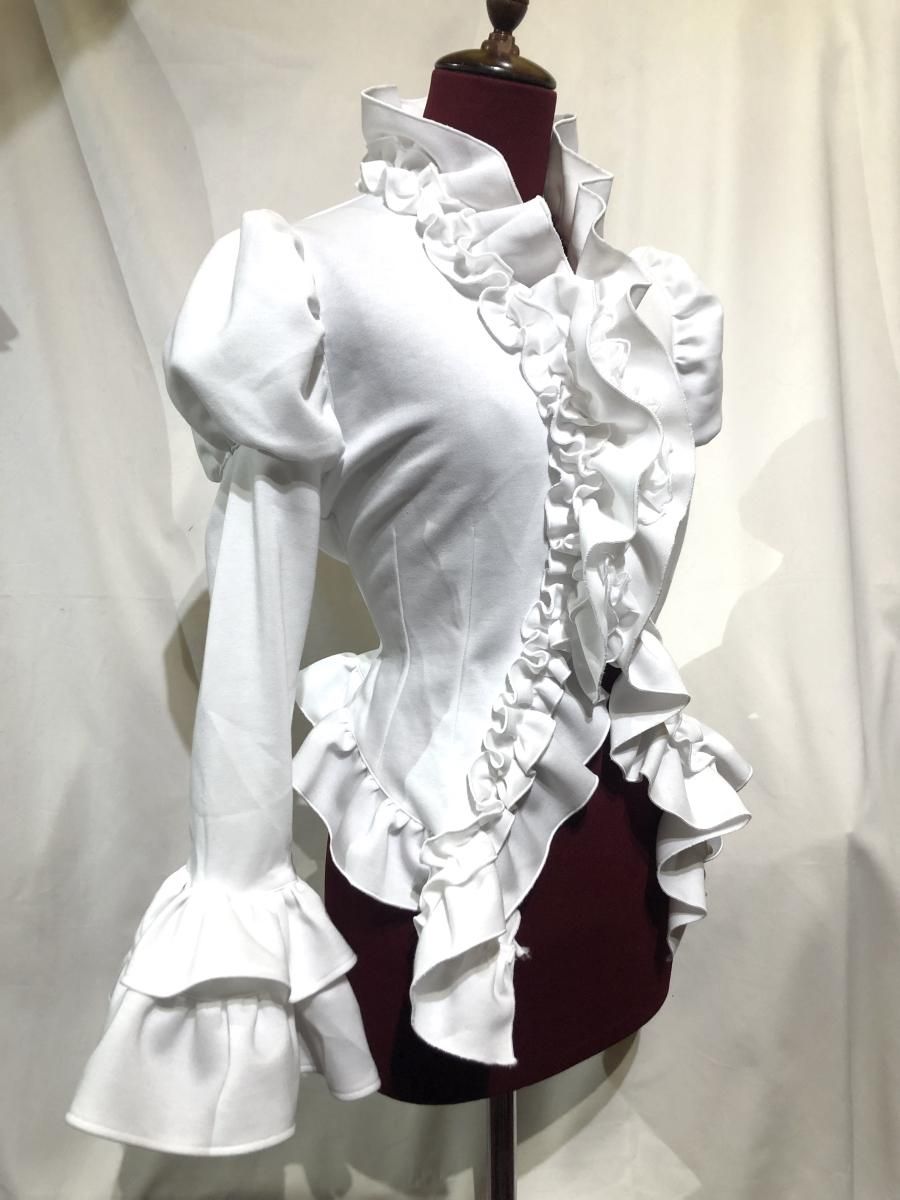★幾重にも重ねた胸元フリルが大輪の花の様なイメージの華やかでシックなカーディガンです。