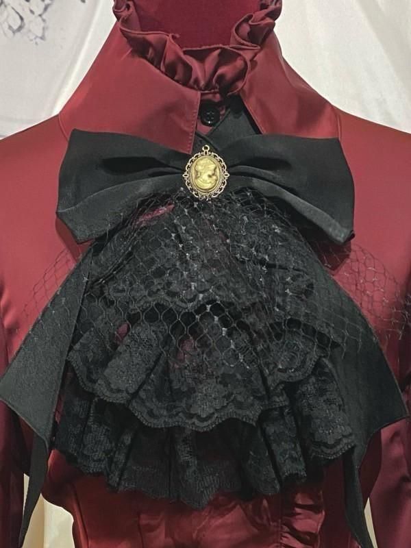 アンティークカメオ付き円型ヘッドドレス:黒別珍×白レース×黒パール