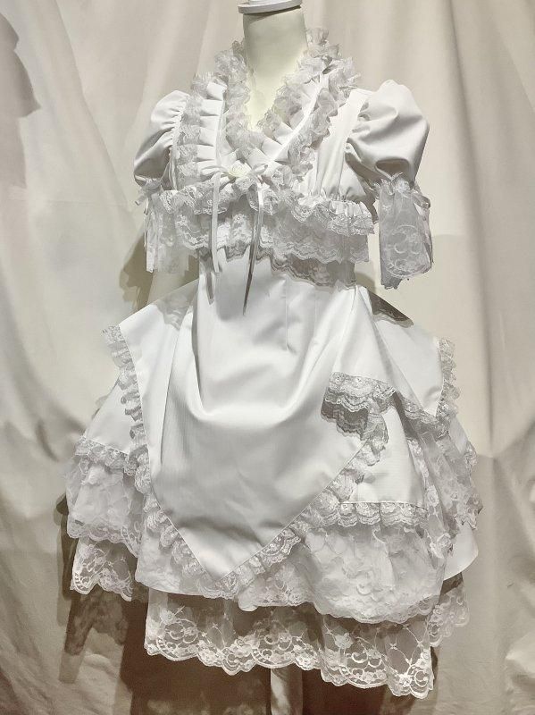 ◆受注商品◆リボン飾りレイヤードスカート:白水玉フロッキー柄×白リボン