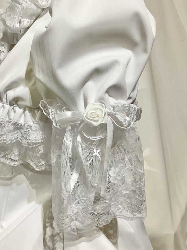 ギャザータイ&フリルタイ付きゴシック調ビショップスリーブブラウス:白×黒