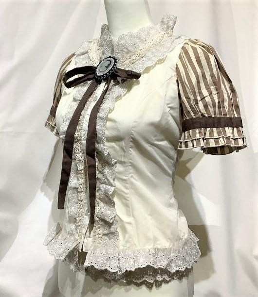 カメオブローチ付きクラシカルブラウス:Sサイズ