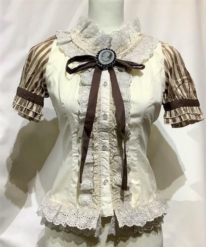 カメオブローチ付きクラシカルブラウス:Mサイズ