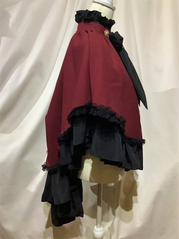 ★立ち襟フリルと胸元フリルが華やかな上品でシックなマント。