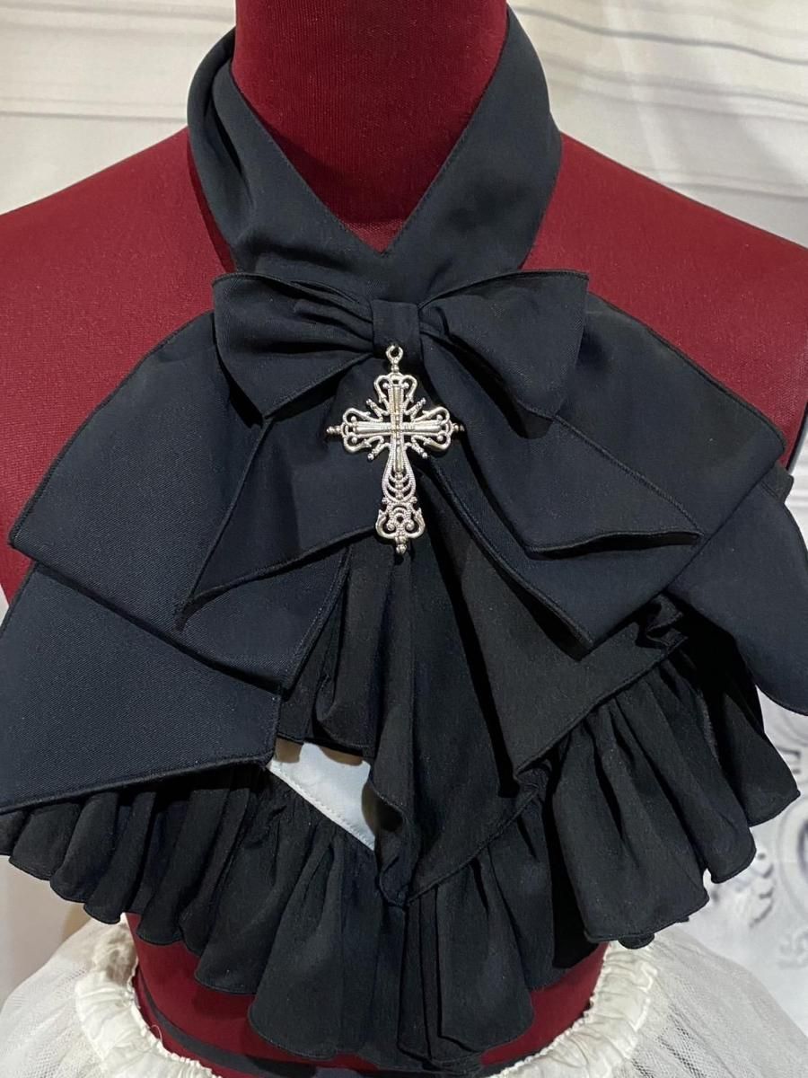 ◆受注商品◆パニエ入り後リボン付きフリルスカート:オフ白ゴシック柄×黒レース