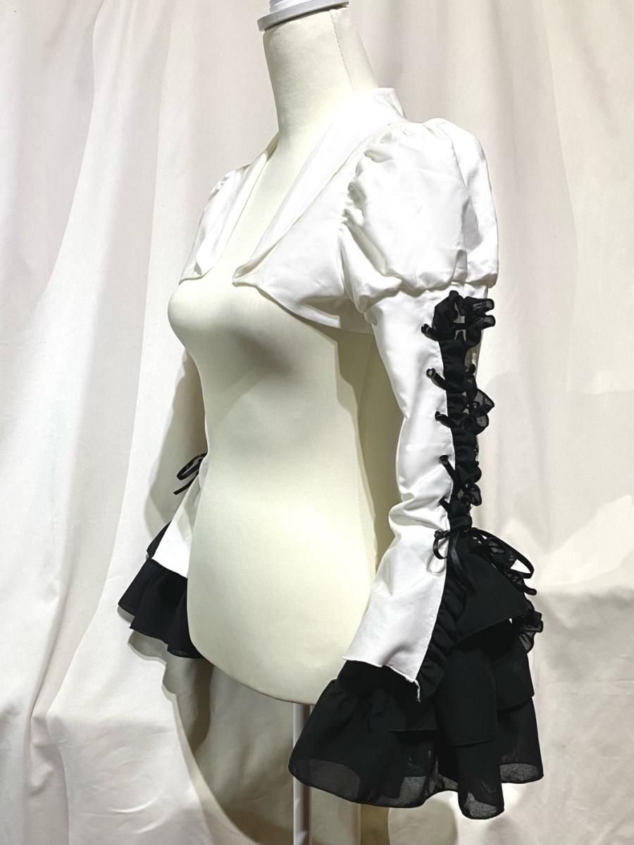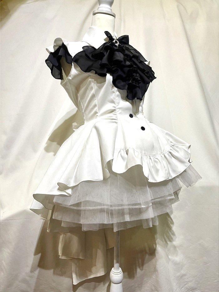 ◆受注商品◆ゴシック調エレガンスタイ付きジャケット型ドレープワンピース:白×黒