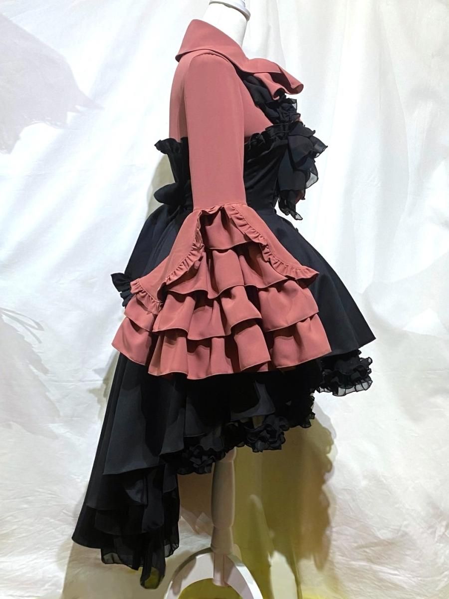 ◆受注商品◆ロマンティックタイ付き総フリルガーリーワンピース:白×黒