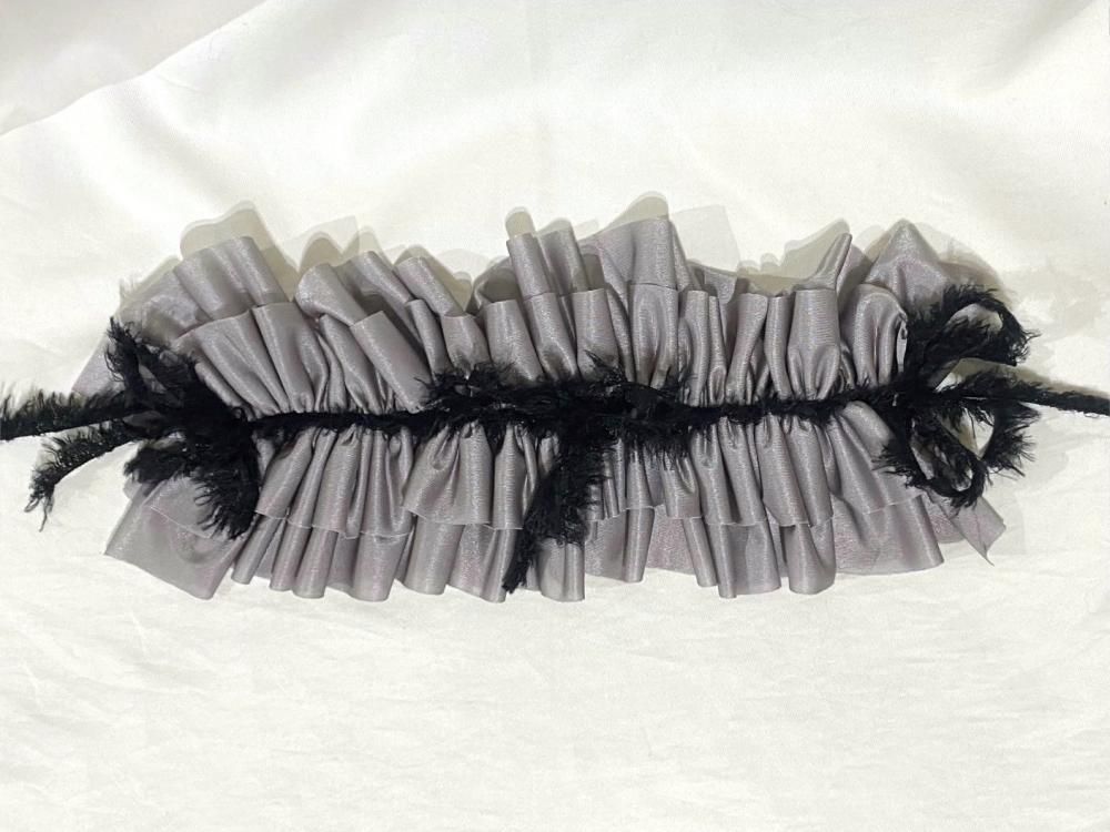 フリンジリボンフリルヘッドドレス:グレー
